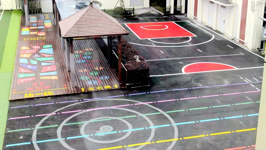 徐汇区向阳育才小学则迎来了一场地面“变身记”——曾经灰暗的水泥地焕然一新,篮球场、趣味迷宫、跳格子等多彩场景依次铺开,装点过校园焕然一新,还巧妙扩充了学生们课间活动的场地,让校园成为孩子们的成长乐园。